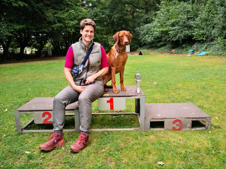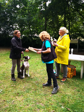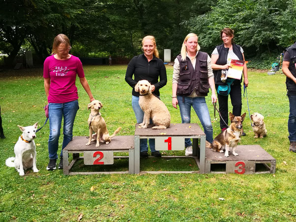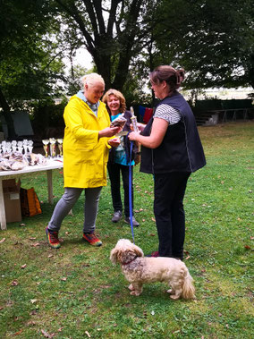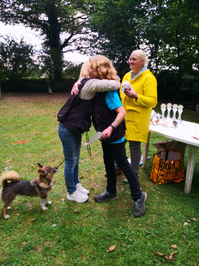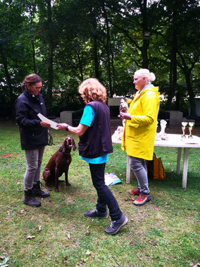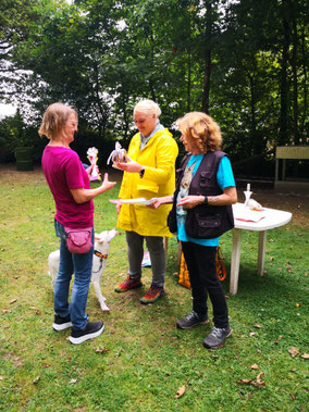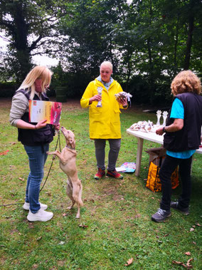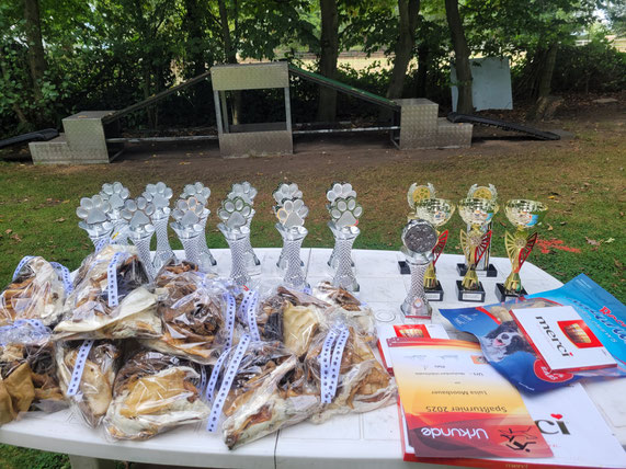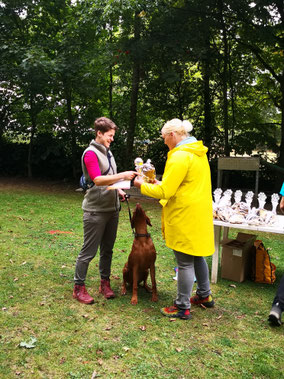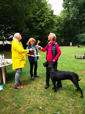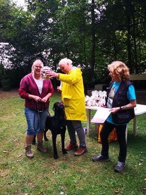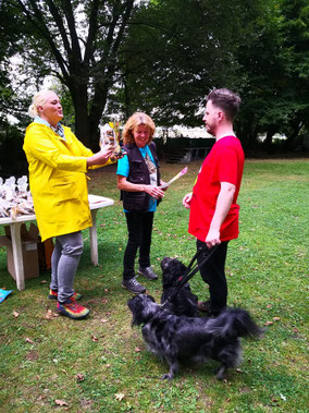 Natürlich gibt es für jedes Team eine Urkunde und einen Pokal. Für die Hunde gibt es einen Beutel voller toller, gesunder Leckerchen, den Sie dann auch gerne mal selber in Empfang nehmen.