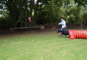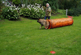 Der Hund lernt hier, die Bahn korrekt abzulaufen und kein Hindernis auszulassen.