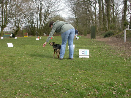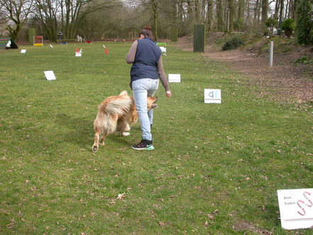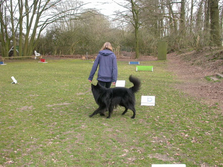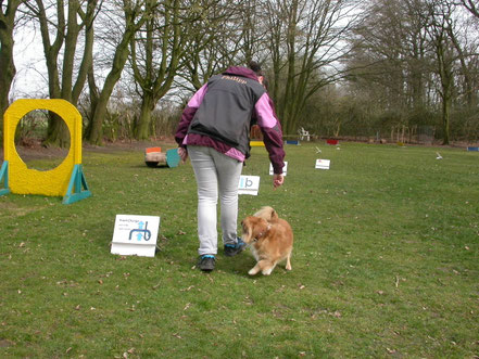 Der HF absolviert mit seinem Hund einen Schilderparcours aus verschiedenen Stationen, die alle aus der Hundesportart Dogdance abgeleitet sind.